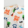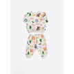 6-9-12-18 Ay Emoje Baskılı Pamuk Penye Kumaş Erkek Bebek Takımı Mavi Çok Renkli