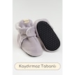 Organik Pamuk Astarlı, Bebek İlk Adım Ayakkabısı, Kaydırmaz Taban, Bebek Pandufu, Bej Patik Gri