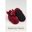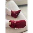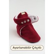 Organik Pamuk Astarlı, Bebek İlk Adım Ayakkabısı, Kaydırmaz Taban, Bebek Pandufu, Bej Patik Kırmızı