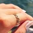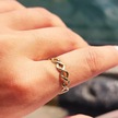 Örgü Altın Yüzük - 14 Ayar Altın Örgü Taşsız Minimal Yarım Tur Kadın Yüzük - Eşe Sevgiliye Yüzük Sarı Altın