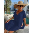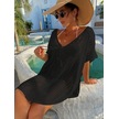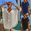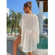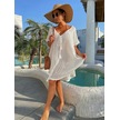 Örgü Bağlama İpi Oymalı Bol Plaj Elbisesi Beyaz
