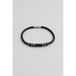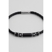 Örgü Detaylı Vegan Deri Erkek Çelik Bileklik Siyah
