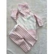 Örgü Kapşonlu Çizgili Çift Kat Hırka Pembe