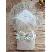 Örgü Tericotton Taç Nakışlı İncili Güpür Çift Fiyonk Papatya Güpür Trilüks Kundak Bebek Battaniyesi Bej