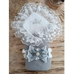 Örgü Tericotton Taç Nakışlı İncili Güpür Çift Fiyonk Papatya Güpür Trilüks Kundak Bebek Battaniyesi Gri
