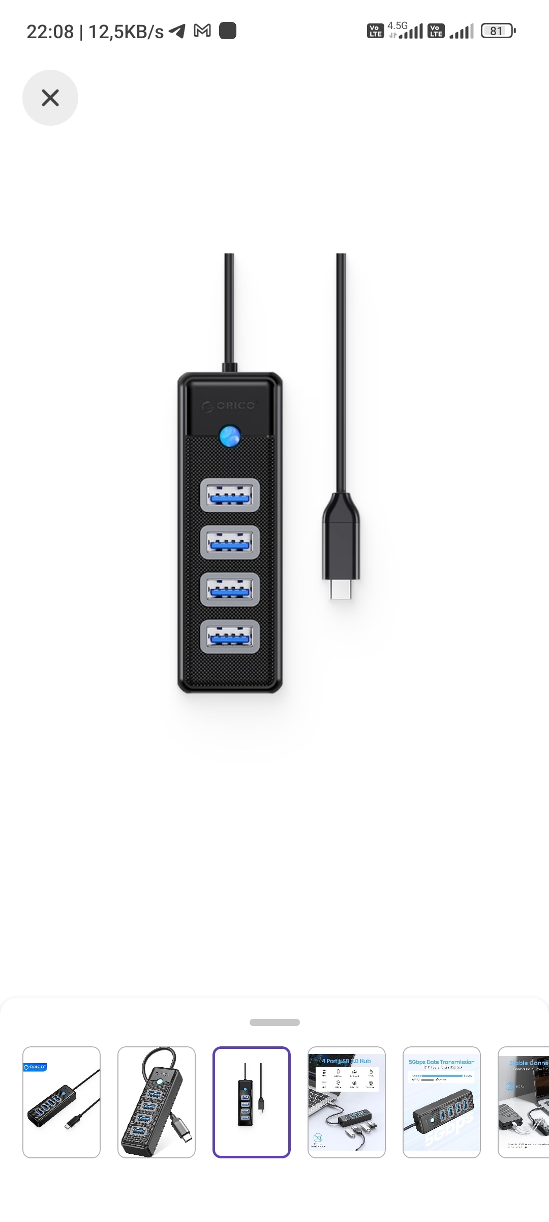 Orico Type-C to USB-A 3.0 4 Portlu Ultra Slim USB Çoklayıcı Hub Siyah