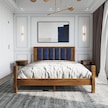 Orion Model Lacivert Renk Puflu Başlıklı Ceviz Renk Çam Ahşap Karyola Ve İki Komodin Set-230 160 x 200 CM