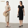 Örme Kısa Kollu Yuvarlak Yaka Düzensiz Dikiş Midi Etek Siyah