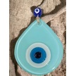 Orta Boy Turkuaz Damla Desen Nazar Boncuklu Duvar Dekoru Cam Duvar Süsü