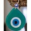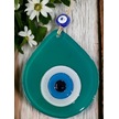 Orta Boy Yeşil Damla Desen Nazar Boncuklu Duvar Dekoru Cam Duvar Süsü