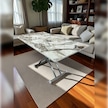 Ortadan Açılır Akıllı Masa Üst Mdf Beyaz Mermer Alt Ayak Krom