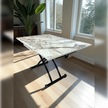 Ortadan Açılır Akıllı Masa Üst Mdf Beyaz Mermer Alt Ayak Siyah