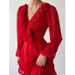 Eteği Volanlı Uzun Elbise Kırık Beyaz
