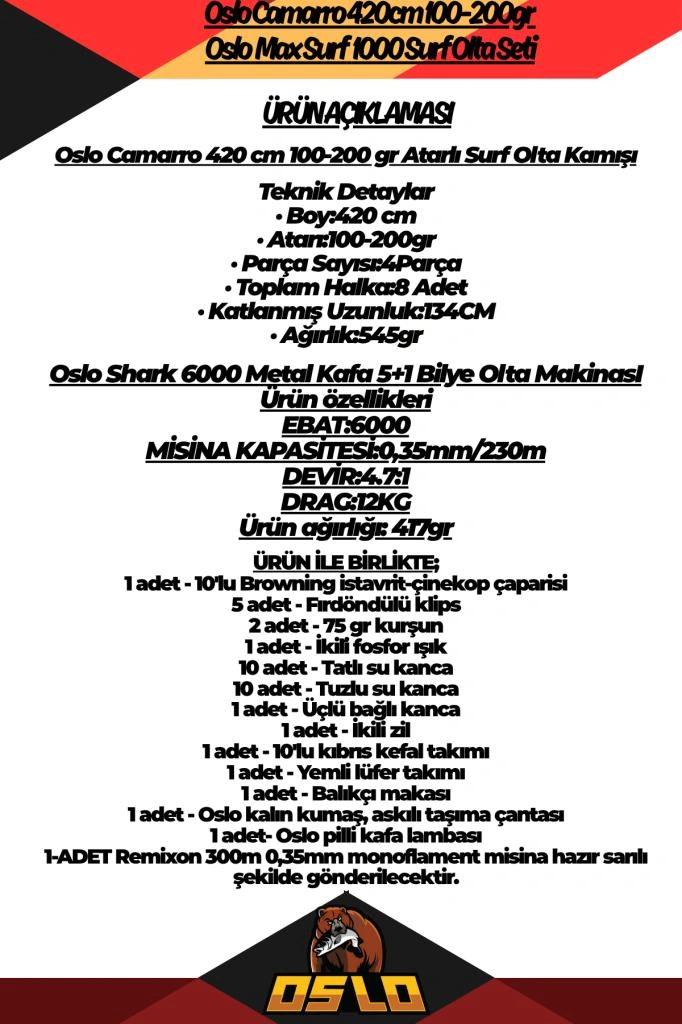 Oslo Camarro 420cm 100-200gr Oslo Surf Max 10000 Surf Olta Seti Standart