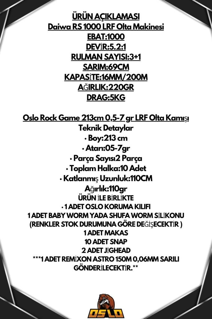 Oslo Rock Game 213cm 0,5-7gr Daiwa Rs 1000 Lrf 8 Örgü Olta Seti Standart