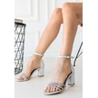 Ossu Gümüş Saten Topuklu Ayakkabı Gümüş