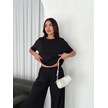 Osy Modal Yumuşak Dokulu Kumaş Bisiklet Yaka T-shirt Bol Paça Pantalon Ikili Takım -siyah Siyah