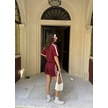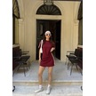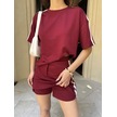 Osy Modal Yumuşak Dokulu Kumaş Kadın Parçalı Bisiklet Yaka T-shirt Mini Şortlu Etek İkili Takım -bor Bordo