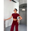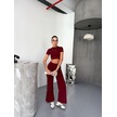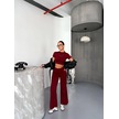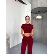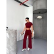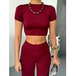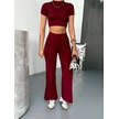 Osy Modal Yumuşak Dokulu Kumaş Kısa Kollu Crop Alt İspanyol Paça Pantalon İkili Takım - Bordo Çok Renkli