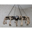 Otantik Çarşı Ahşap Halatlı Teker Avize 100 Cm. 13'lü Serbest Sarkıtlı