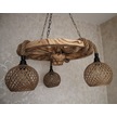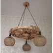 Otantik Çarşı Ahşap Teker Avize 60 Cm. 3 Duylu Hasır Şapkalı Siyah