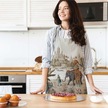 Otantik Manzara Tasarımlı Mutfak Önlüğü Keten Kumaş, Uluslararası Yıkama Ve Solmama Sertifikası Çok Renkli