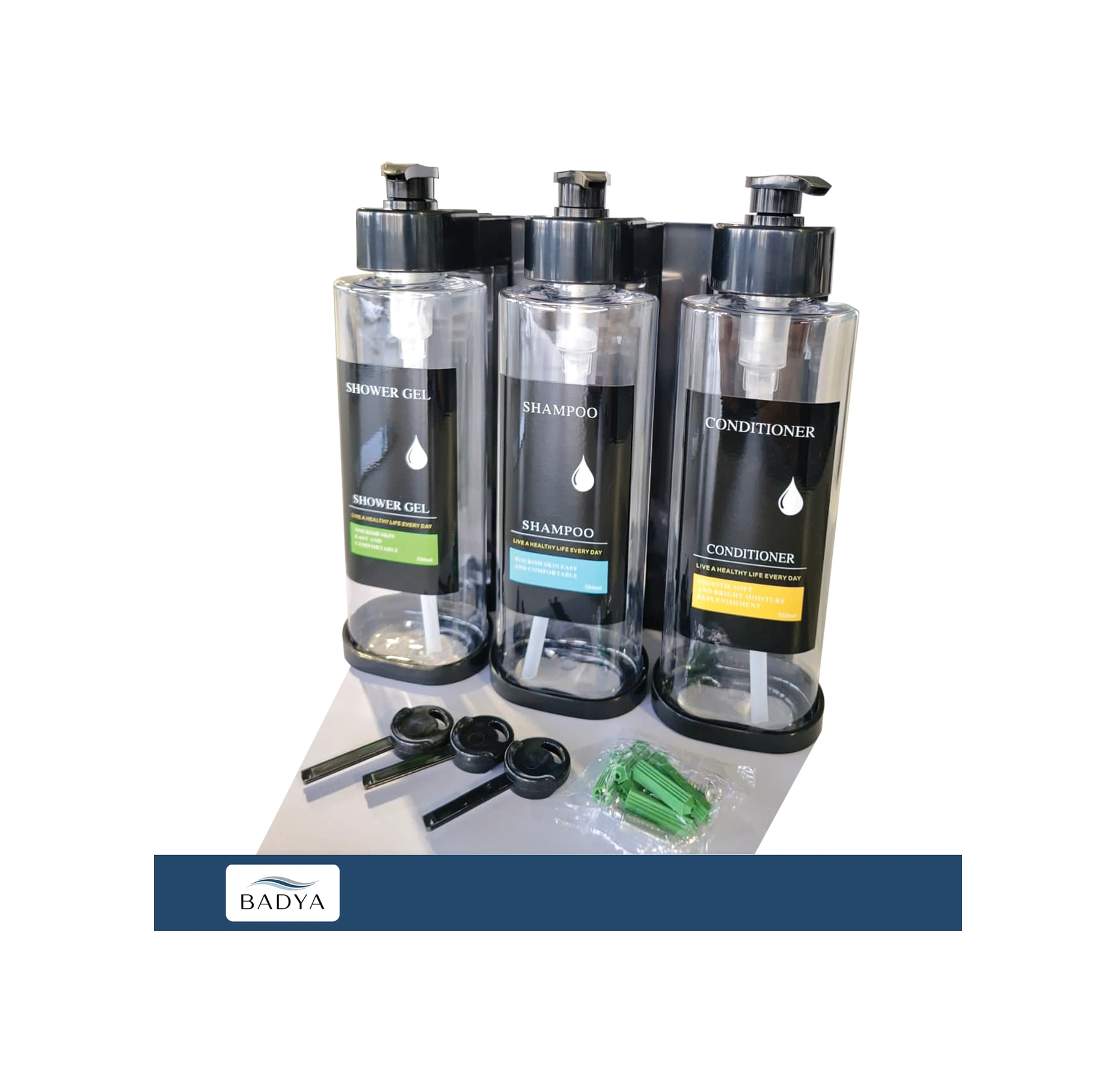 Otel Tipi 3'lü Sıvı Sabunluk Şampuanlık T.443 Şeffaf