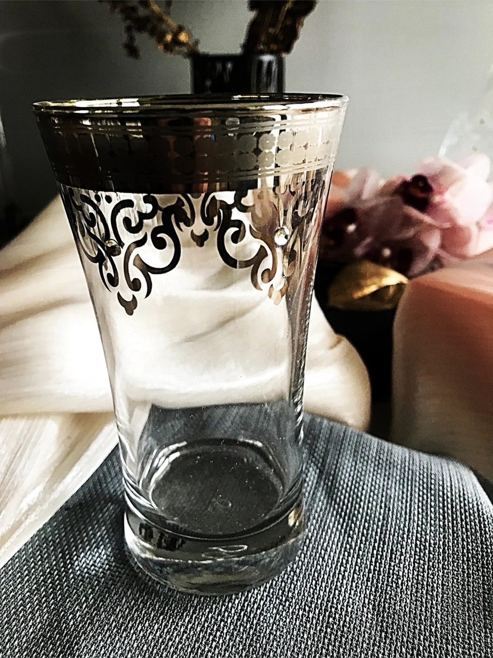 Ottoman Gümüş Kaplama Paşabahçe Azur Lux Meşrubat Ve Su Bardağı 300cc Gri