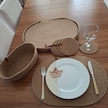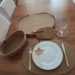Oval 6 Kişilik 14 Parça Hasır Rengi Amerikan Servis, Hasır Supla Naturel