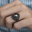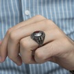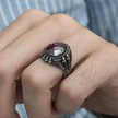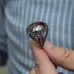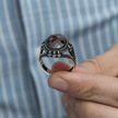 Oval Kırmızı Taşlı 925 Gümüş Erkek Yüzük