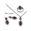 Oval Kırmızı Taşlı Otantik Gümüş Set Rose Gold - Gümüş