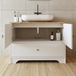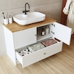 Oval Lavabolu Ayaklı 2 Kapaklı Çekmeceli Mdf 100 Cm Banyo Aria Atlantik Çam - Beyaz
