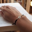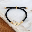 Oval Motifli İpek Örgülü 14 Ayar Altın Plakalı Aile Sembollü Hediye Bileklik-320sembol-siyah Altın