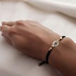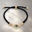 Oval Motifli İpek Örgülü 14 Ayar Altın Plakalı Dünya Gözü Sembollü Hediye Bileklik-320sembol-siyah Altın