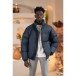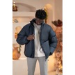 Oversize Bol Kesim Dik Yaka Fermuar Kapamalı Şişme Mont Lacivert