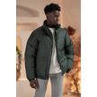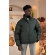Oversize Bol Kesim Dik Yaka Fermuar Kapamalı Şişme Mont Yeşil