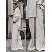 Oversize Çizgili Takım Krem Krem
