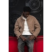 Oversize Crop Model Yan Cepli Astarlı Kırçıllı Mont Kahverengi