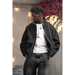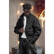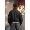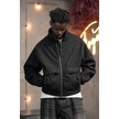 Oversize Crop Model Yan Cepli Astarlı Kırçıllı Mont Siyah