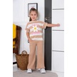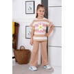 Oversize İspanyol Paça Kız Çocuk Takım Bej