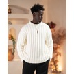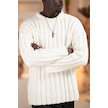 Oversize Kendinden Çizgili Pamuklu Kalın Triko Spor Kazak Beyaz