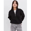 Oversize Yarım Farmuarlı Yakalı Basic Sweatshirt - Siyah Siyah