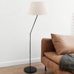 Oynar Gövdeli Siyah Metal Lambader Konik Krem Kumaş Başlık Dekoratif Köşe Lambası Krem