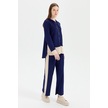 Oysh Kumaş Fermuar Kapamalı Kapişonlu Pantolonlu Takım Laci Lacivert