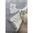 Oyuncak Hediyeli Bebek Triko Battaniye 90x90 Cm Gri Gri