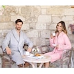 Özdilek Wedding Terlikli Aile Bornoz Seti Takımı Gri/Pudra