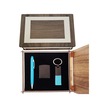 Özel Ahşap Kutulu Mavi Kalem Anahtarlık Ve Çakmak Set Çok Renkli