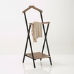 Özel Seri Meşe Ahşap Dilsiz Uşak Siyah Metal Çift Tepeli Ayaklı Askı Raflı Model Siyah