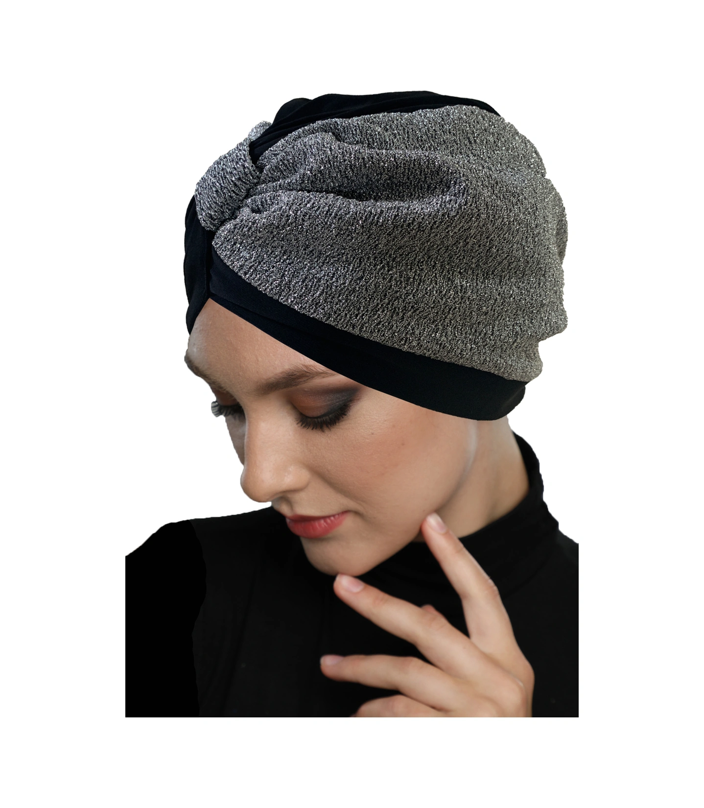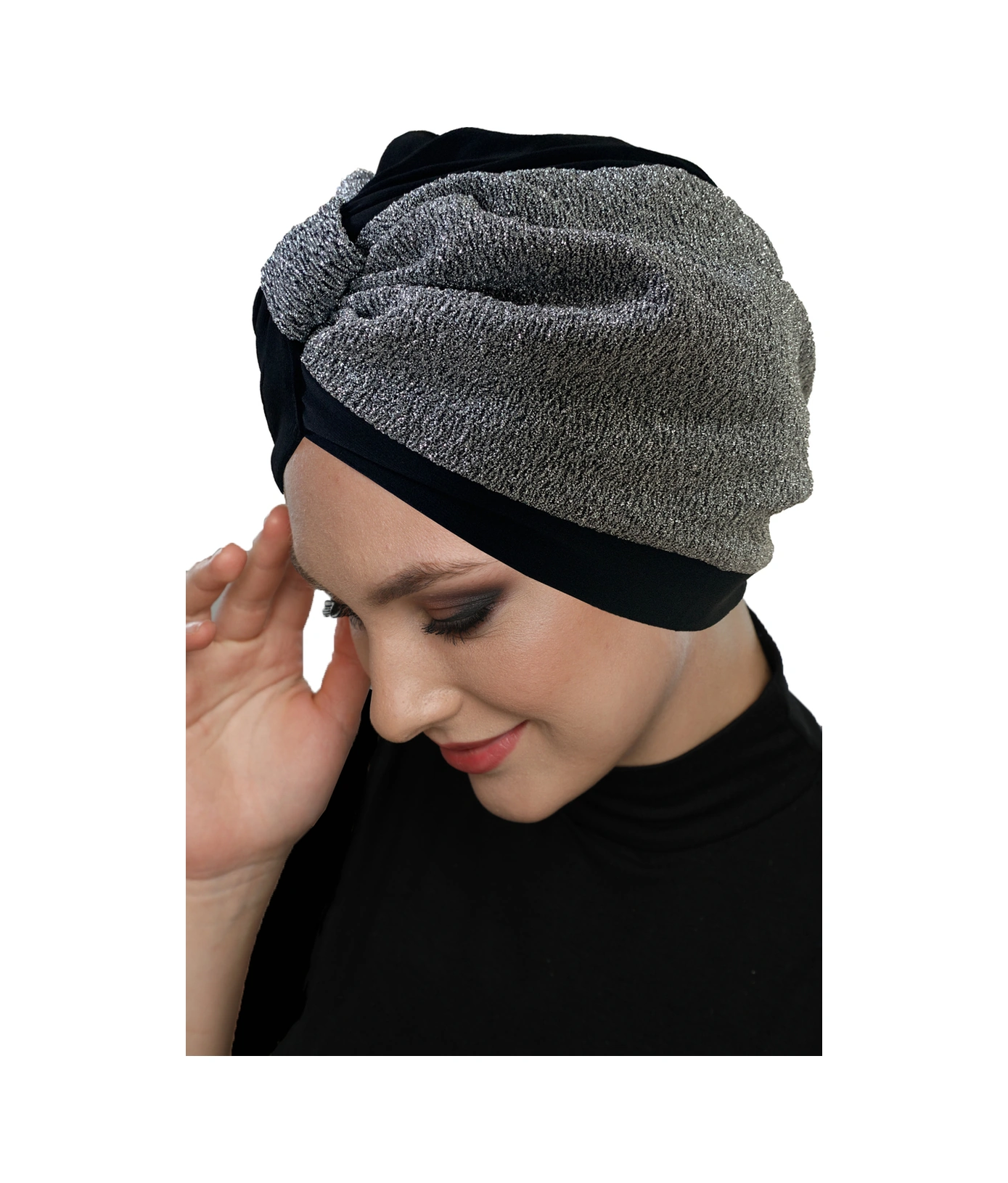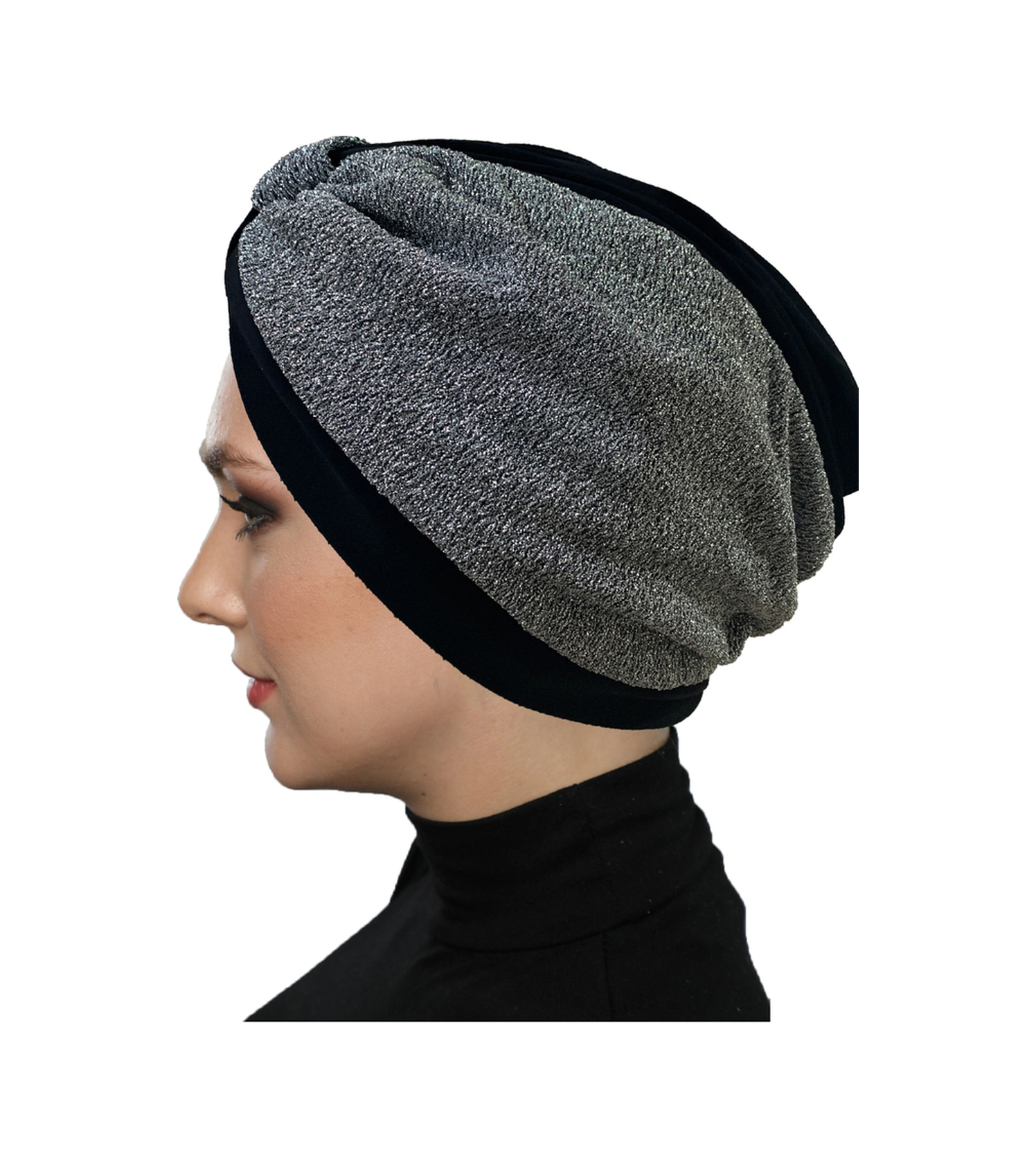 Özel Tasarım Siyah Gri Astarlı Hazır Türban Tesettür Abiye Bone Siyah-gri2