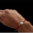 Özge İsmine Özel İpek Örgülü 14 Ayar Altın Plakalı Nar Motifli Hediye Bileklik-323isim-kırmızı Altın